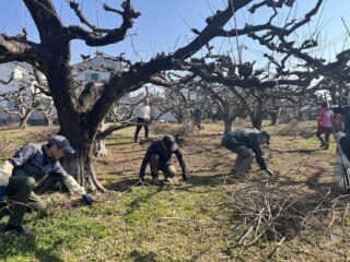 当日の作業としては、イチジクの誘引ゴムの片付け、柿畑の剪定枝の片付け作業などをおこないました。11名もいるとあっという間に作業が終わるため、農業者の方も大変ありがたいとおっしゃていました。